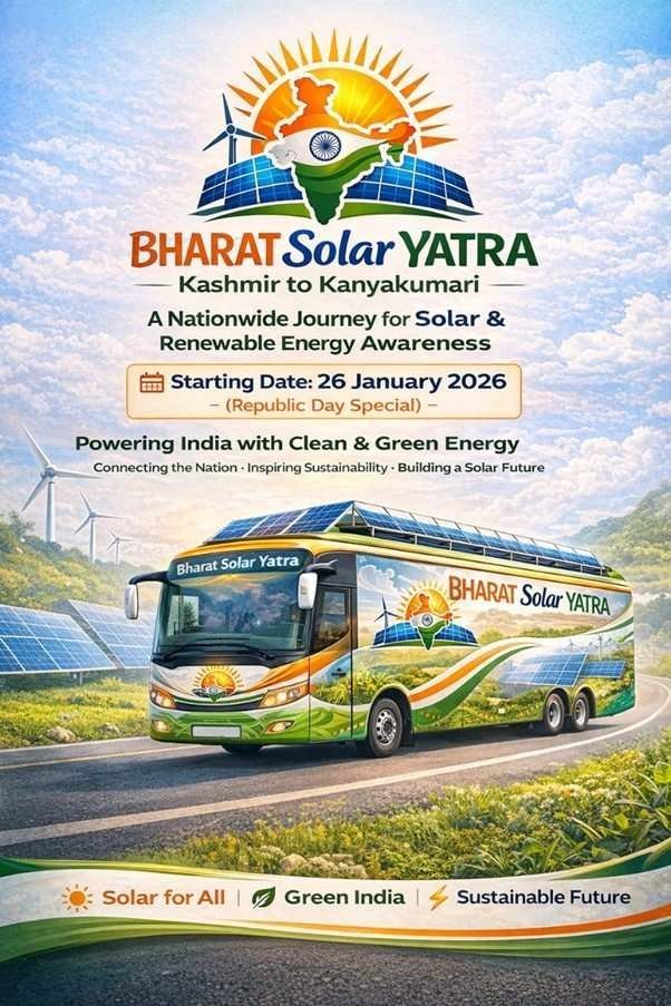 Bharat Solar Yatra is more than an initiative — it is a people-led clean energy movement. It invites policymakers, institutions, industry leaders, startups, students, and citizens to come together and shape India’s sustainable future. As the Yatra moves from Kashmir to Kanyakumari, it carries a simple yet powerful message: India’s clean energy transition will succeed when awareness meets action — on every road, in every city, and on every rooftop.